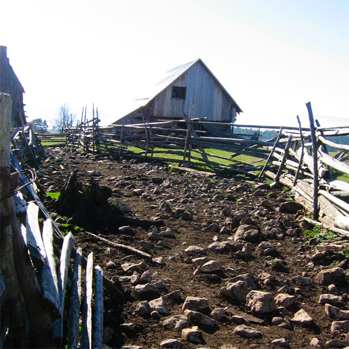 Živopisno, u vremenu zamrznuto, pogranično selo, na platou kanjona rijeke Tare. Međudržavna granica BiH i Crne Gore, dijeli selo na dva dijela.